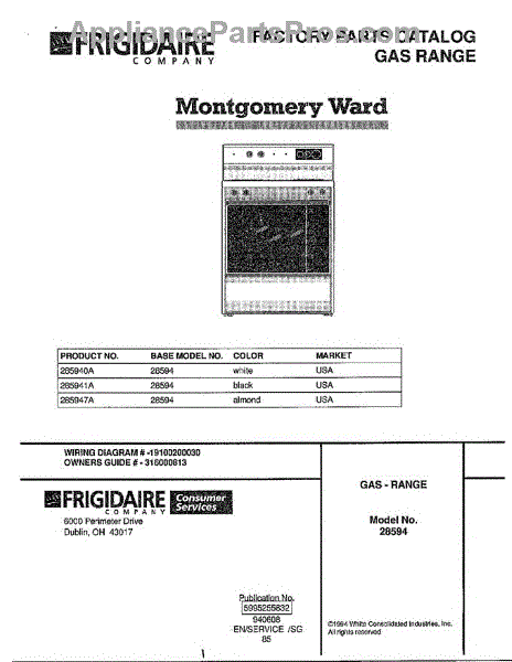Parts for Frigidaire 285940A: Gas Range / Front Cover Parts
