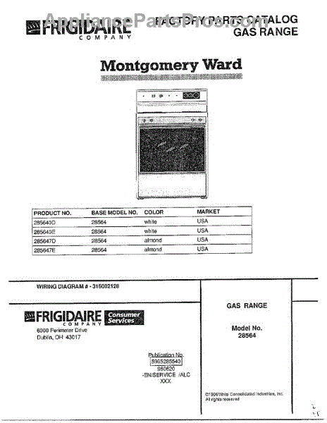 Parts for Frigidaire 285640D: Gas Range Parts