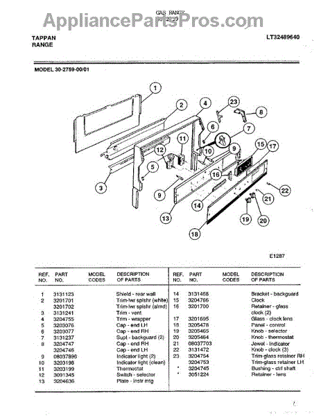 Parts for Frigidaire 30-2759: Gas Range Parts