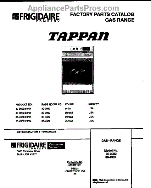 Parts for Frigidaire 30-4382-23-03: 01 - Gas Range Parts