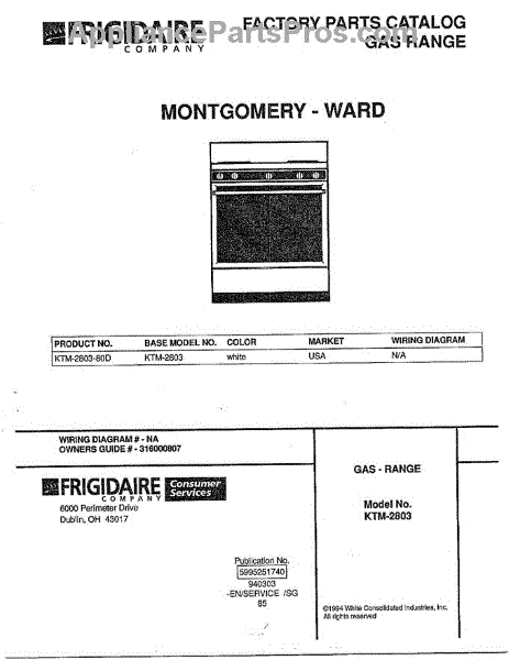 Parts for Frigidaire KTM-2803: Gas Range Parts
