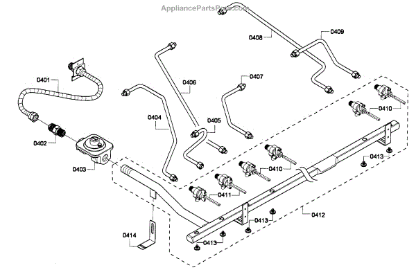 The Tube is an OEM part for Bosch gas ranges. It is a hollow metal tube that sits beneath each gas burner on the cooktop and connects the burner to the gas valve and manifold.