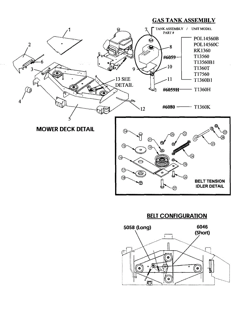 Parts for Swisher T1360T: Gas Tank / Mower Deck / Belt Parts