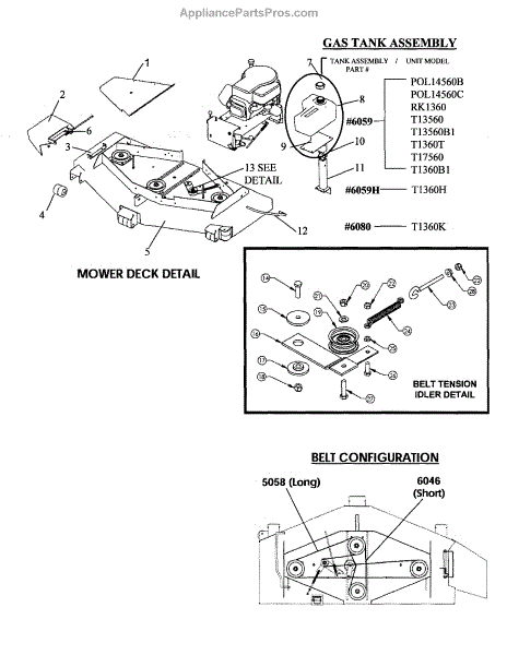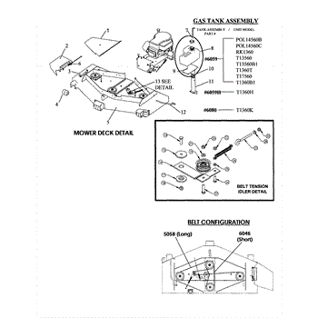 Parts for Swisher T17560: Gas Tank / Mower Deck / Belt Parts