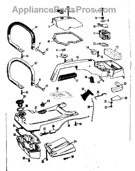 Parts for Craftsman 358350842: Gas Tank Top And Handle Parts