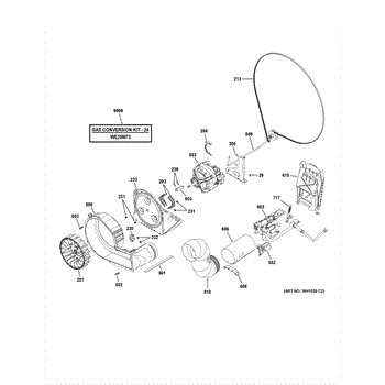 Working together as a system, this assembly regulates gas flow to the heating elements. It provides consistent thermal output throughout drying cycles under control board direction.