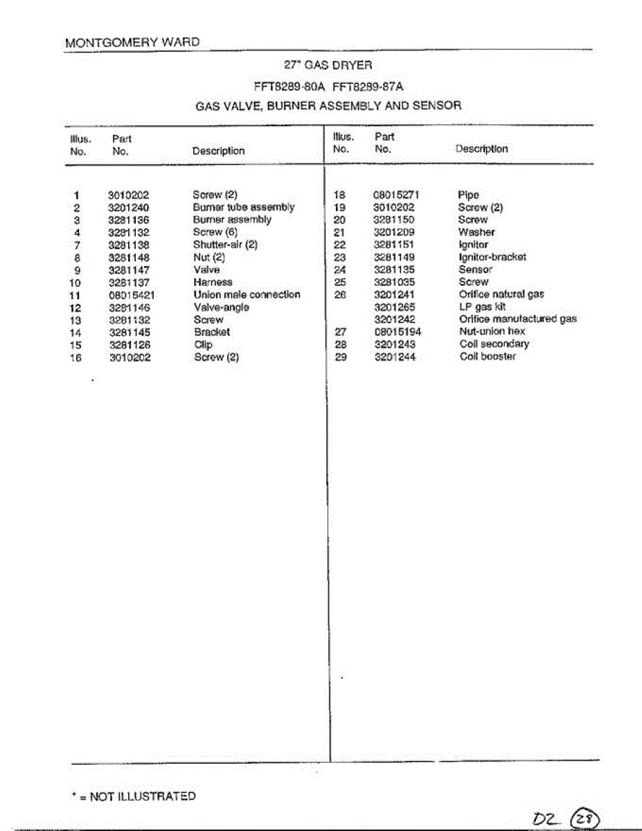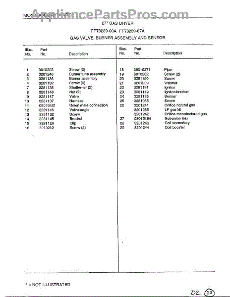Parts for Frigidaire 8289-80A: Gas Valve / Burner / Sensor Page 2 Parts