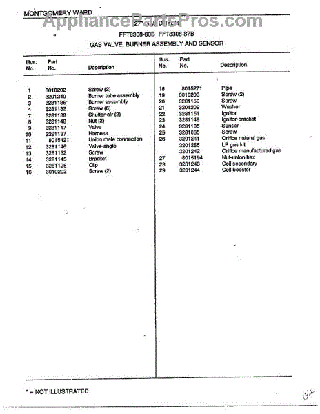 Parts for Frigidaire 8308-80B: Gas Valve / Burner Assembly And Sensor Page 2 Parts