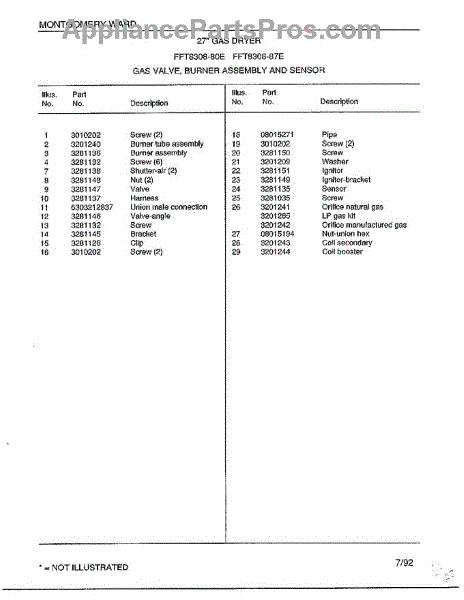 Parts for Frigidaire 8308-80E: Gas Valve / Burner Assembly And Sensor Page 2 Parts