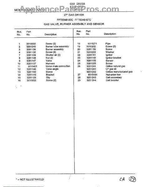 Parts for Frigidaire 8348-87C: Gas Valve, Burner Assembly And Sensor Page 2 Parts