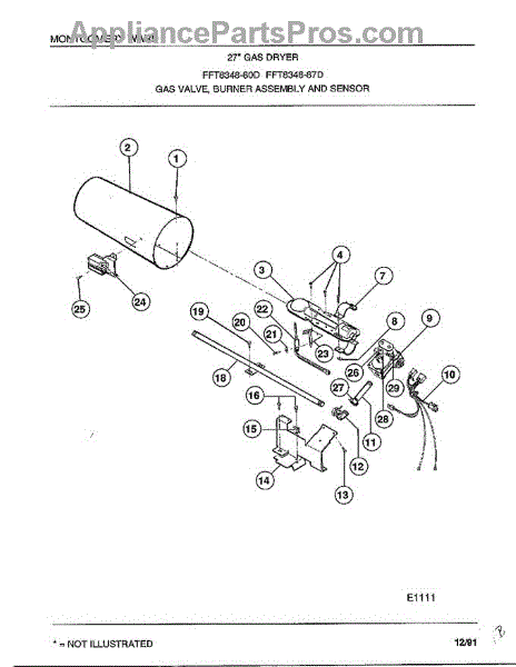 Parts for Frigidaire 8248-87D: Gas Valve, Burner Assy And Sensor Parts