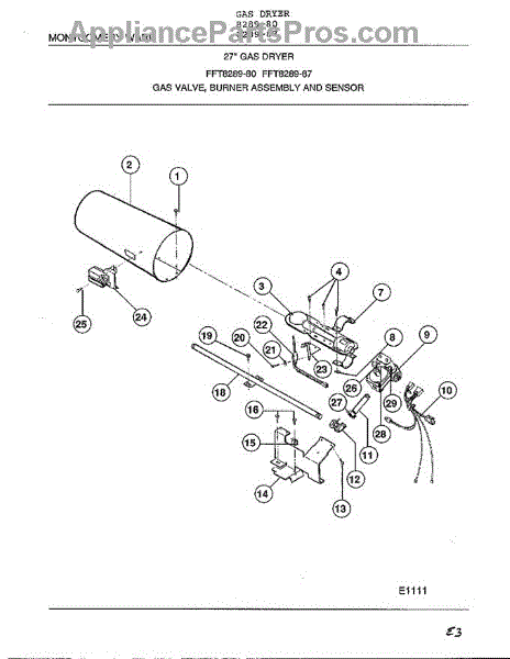 Parts for Frigidaire 8289-80: Gas Valve, Burner Assembly And Sensor Parts