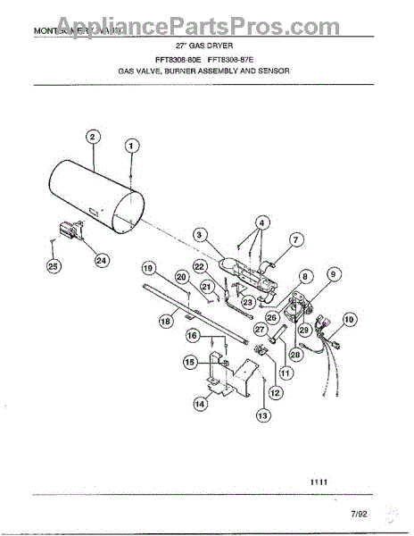 Parts for Frigidaire 8308-87E: Gas Valve / Burner Assembly And Sensor Parts