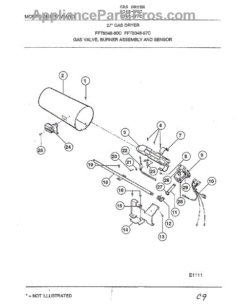 Parts for Frigidaire 8348-87C: Gas Valve, Burner Assembly And Sensor Parts