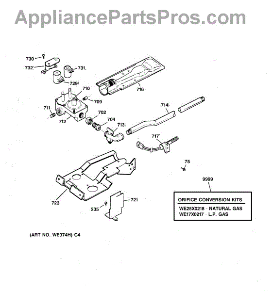 For LP to natural gas conversion kit, order part number WE25X218.