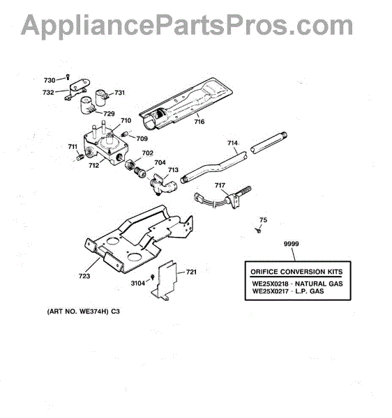 For LP to natural gas conversion kit, order part number WE25X218.