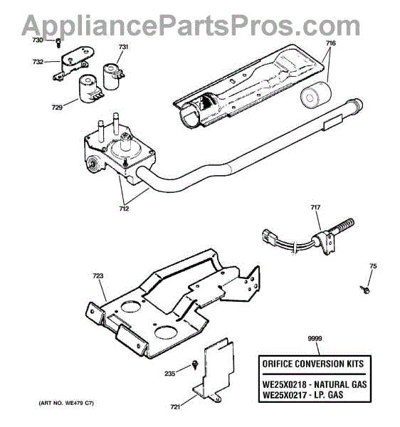 This GE replacement part is also compatible with Hotpoint, RCA, and some Kenmore models. For LP to natural gas conversion kit, order part number WE25X218.