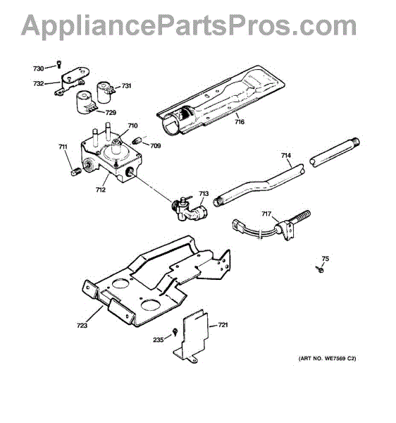 This burner assembly is the combustion head for GE gas dryers. It mixes gas and air and directs a stable flame into the heater housing, restoring consistent heat when the original burner is corroded, warped, or clogged.