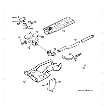 This burner assembly is the combustion head for GE gas dryers. It mixes gas and air and directs a stable flame into the heater housing, restoring consistent heat when the original burner is corroded, warped, or clogged.
