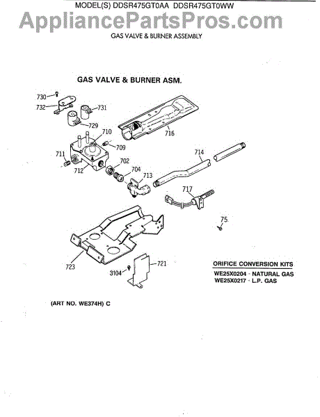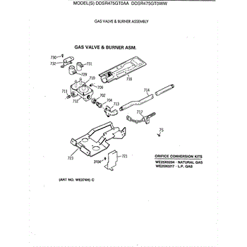 Parts for Ge DDSR475GT0AA: 05 - Gas Valve & Burner Assembly Parts