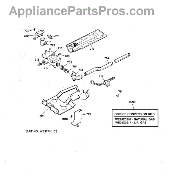 For LP to natural gas conversion kit, order part number WE25X218.