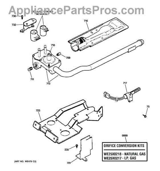 This GE replacement part is also compatible with Hotpoint, RCA, and some Kenmore models. For LP to natural gas conversion kit, order part number WE25X218.