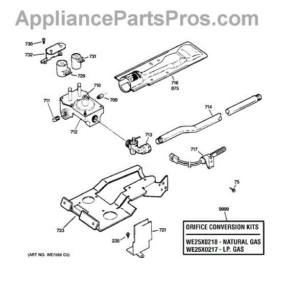 This GE replacement part is also compatible with Hotpoint, RCA, and some Kenmore models. For LP to natural gas conversion kit, order part number WE25X218.