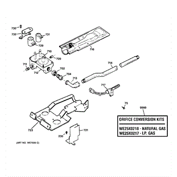 The LP Conversion Kit is an OEM part for GE dryers. It is designed to convert a natural gas dryer to liquid propane (LP) gas. This conversion kit ensures that the dryer operates efficiently and safely with LP gas, which requires different pressure settings and orifices than natural gas.