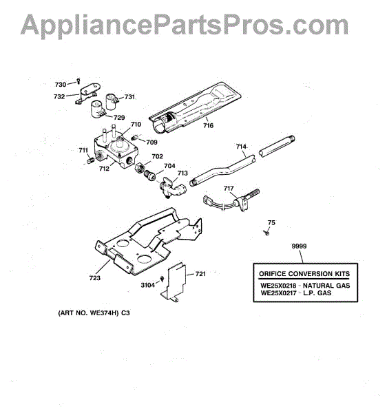 Parts for Ge DPXR473GW0WW: 05 - Gas Valve & Burner Assembly Parts