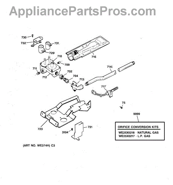 For LP to natural gas conversion kit, order part number WE25X218.