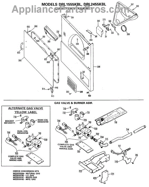 Parts for Ge DRL1555KBL: 04 - Cabinet Front Assembly Parts