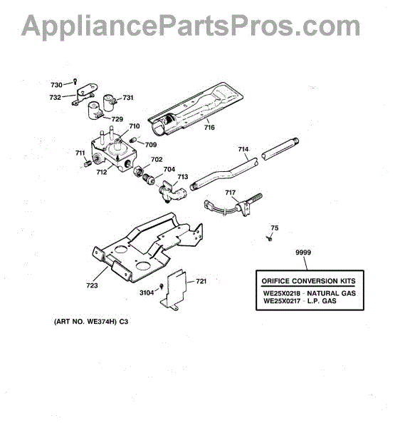 For LP to natural gas conversion kit, order part number WE25X218.