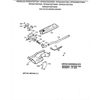 Meters gas flow to the dryer burner. Replace if damaged, clogged, or when converting between natural gas and LP. Installs at the burner assembly.