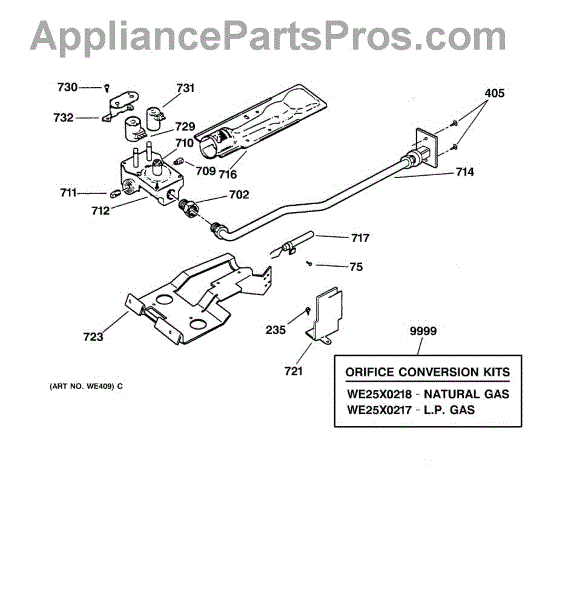 This GE replacement part is also compatible with Hotpoint, RCA, and some Kenmore models. For LP to natural gas conversion kit, order part number WE25X218.
