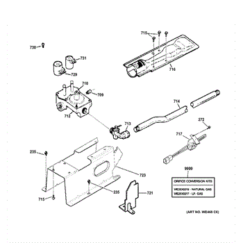 This burner assembly is the combustion head for GE gas dryers. It mixes gas and air and directs a stable flame into the heater housing, restoring consistent heat when the original burner is corroded, warped, or clogged.