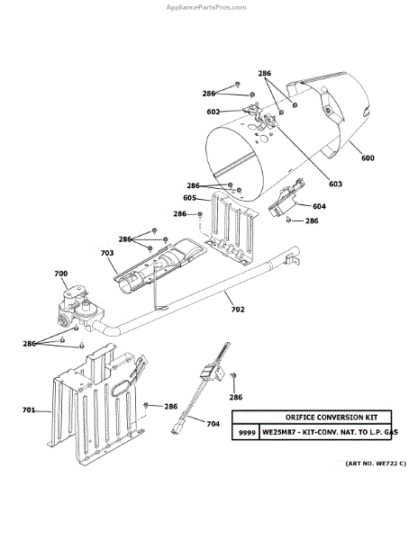 The LP Conversion Kit is an OEM part for GE dryers. This kit allows for the conversion of a natural gas dryer to operate on liquid propane (LP) gas. It includes all necessary components to ensure a safe and efficient conversion process, including a new orifice, regulator spring, and installation instructions.