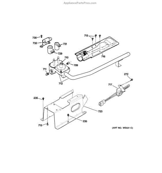 Meters gas flow to the dryer burner. Replace if damaged, clogged, or when converting between natural gas and LP. Installs at the burner assembly.