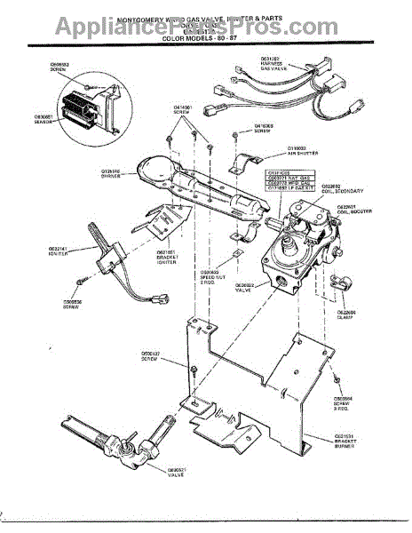 Parts for Frigidaire 8517A: Gas Valve, Igniter And Parts