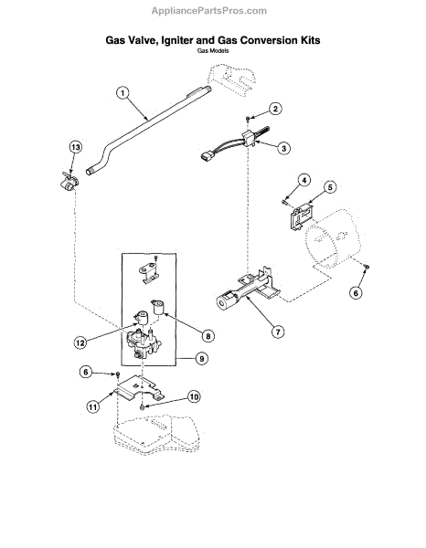 Parts for Speed Queen AGS20AWF: Gas Valve / Igniter / Gas Conversion Parts