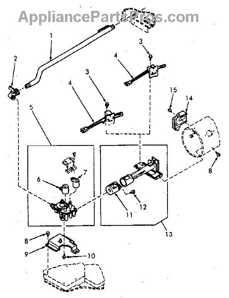 Parts for Speed Queen NG6619W53821: Gas Valve, Igniter And Burner Tube Parts