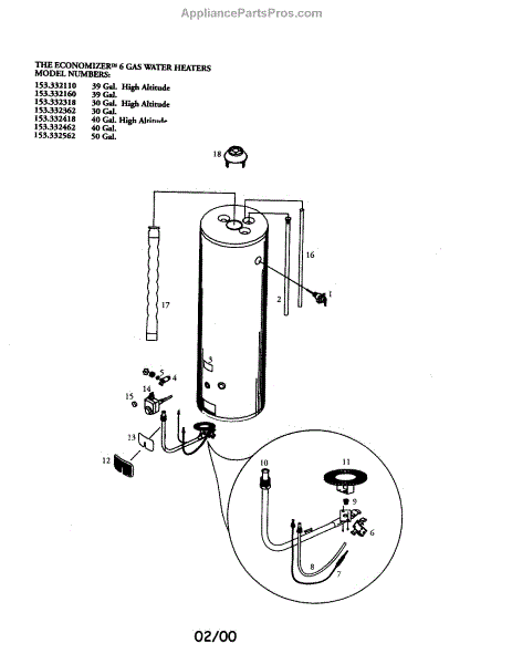 Parts for Kenmore 153.332562 (153332562, 153 332562): 6 Gas Water Heater Parts