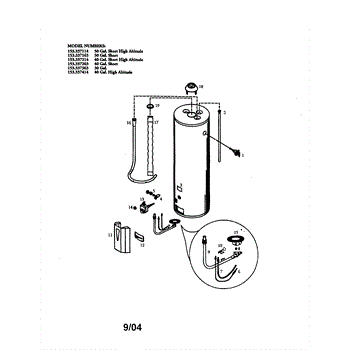 Parts for Kenmore 153.337363 (153337363, 153 337363): Gas Water Heater Parts