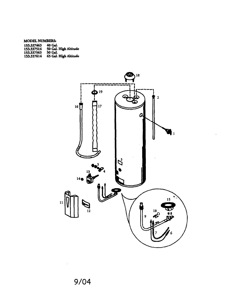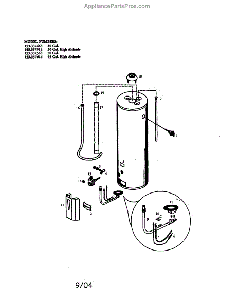 Parts for Kenmore 153.337614 (153337614, 153 337614): Gas Water Heater Parts