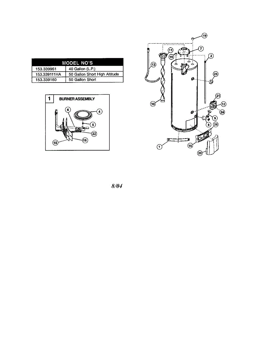 Parts for Kenmore 153.339111HA (153339111HA, 153 339111HA): Gas Water Heater Parts