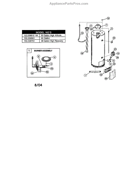 Parts for Kenmore 153.339761 (153339761, 153 339761): Gas Water Heater Parts