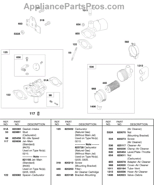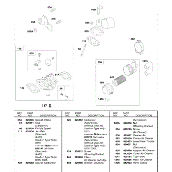 Parts for Briggs & Stratton 584447-0205-E2: Gaseous / Natural Gas Mixer, Air Cleaner Parts
