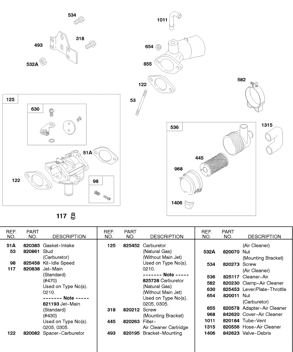 Parts for Briggs & Stratton 584447-0210-E2: Gaseous / Natural Gas Mixer, Air Cleaner Parts