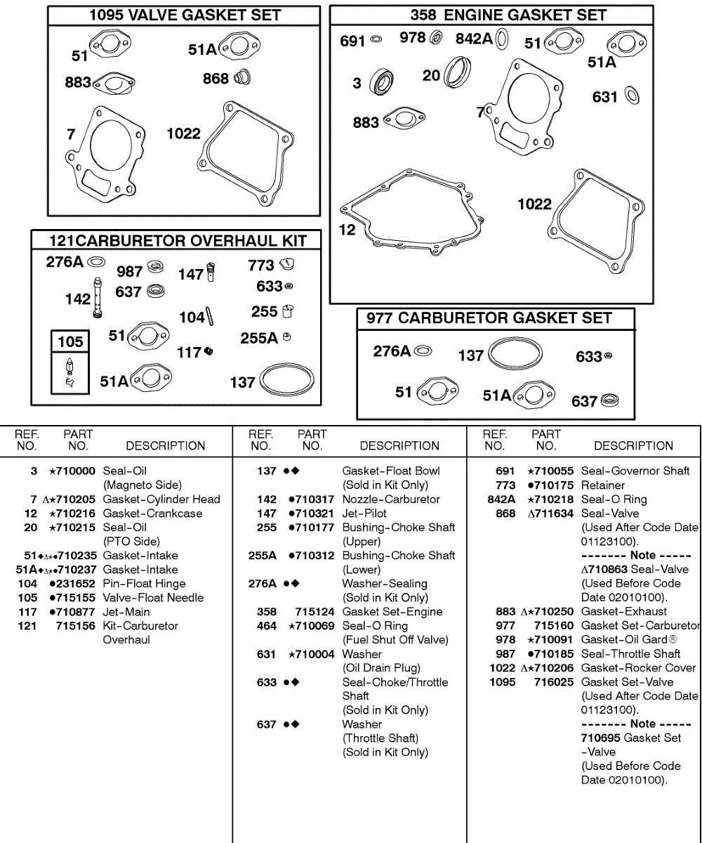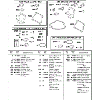 Parts for Briggs & Stratton 187432-0110-B1: Gasket Set - Carburetor, Gasket Set - Engine, Gasket Set - Valve, Kit - Carburetor Overhaul Parts