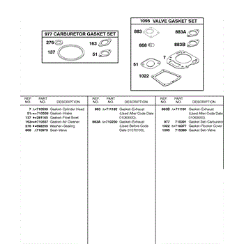 Parts for Briggs & Stratton 235432-0042-01: Gasket Set-Carburetor, Gasket Set-Valve Parts
