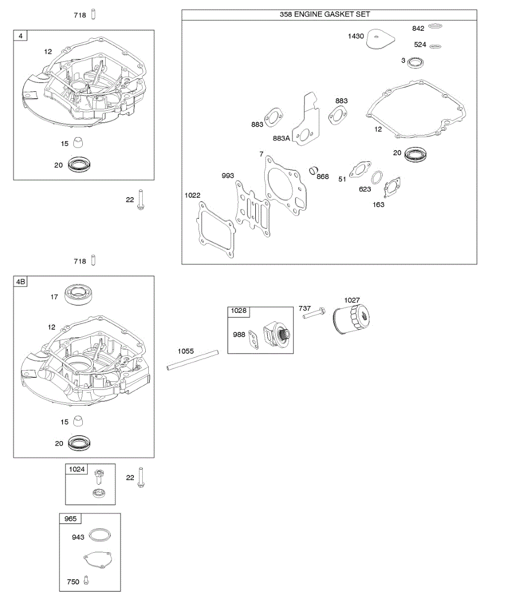 Parts for Briggs & Stratton 12S902-1563-B1: Gasket Set-Engine, Sump Parts